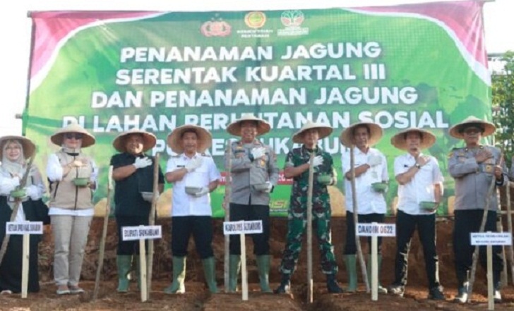 SUKABUMI ll Jabar.Journalistpolice.com – Polres Sukabumi melaksanakan penanaman jagung serentak dipimpin langsung Kapolri Jenderal Pol Drs. Listyo Sigit Prabowo, M.Si., melalui video conference di atas lahan perhutanan sosial Desa Kertajaya, Kecamatan Simpenan, Kabupaten Sukabumi, pada Rabu (9/7/2025).